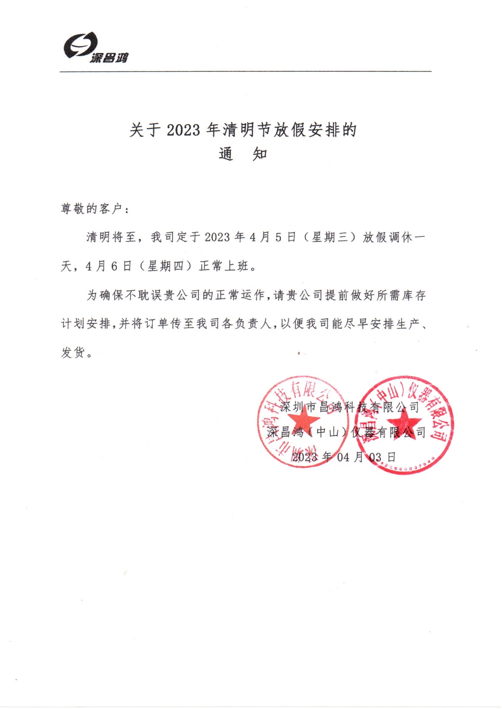 關(guān)于2023年清明節(jié)放假安排的通知