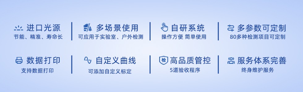 ● 可檢測(cè)水質(zhì)中近百種參數(shù)的濃度、吸光度、透光度,并可對(duì)濃度值存儲(chǔ)、打印、查詢及上傳到計(jì)算機(jī)中。