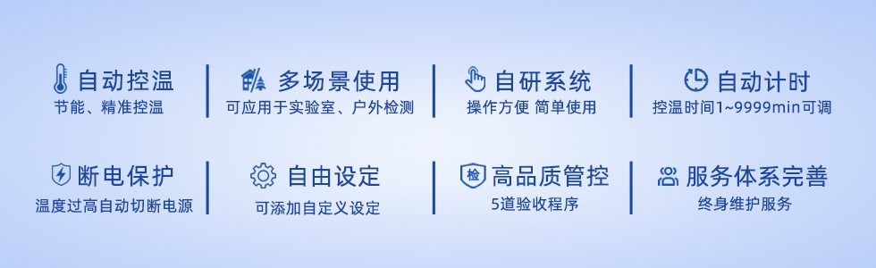 ● 儀器具有二次保護功能,當消解儀溫度超過200度時,儀器會自己切斷電源,以保證消解過程的安全性。