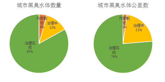 由圖可知,城市黑臭水體治理成效顯著,城市黑臭水體大部分已經(jīng)完成了治理。